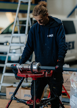 Instead of one size fits all, we have made machines per size of pipe. This enables pre-setting the groove depth and making each machine portable. Half the weight of the competition and a fraction of the size of a stationary setup.